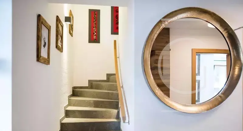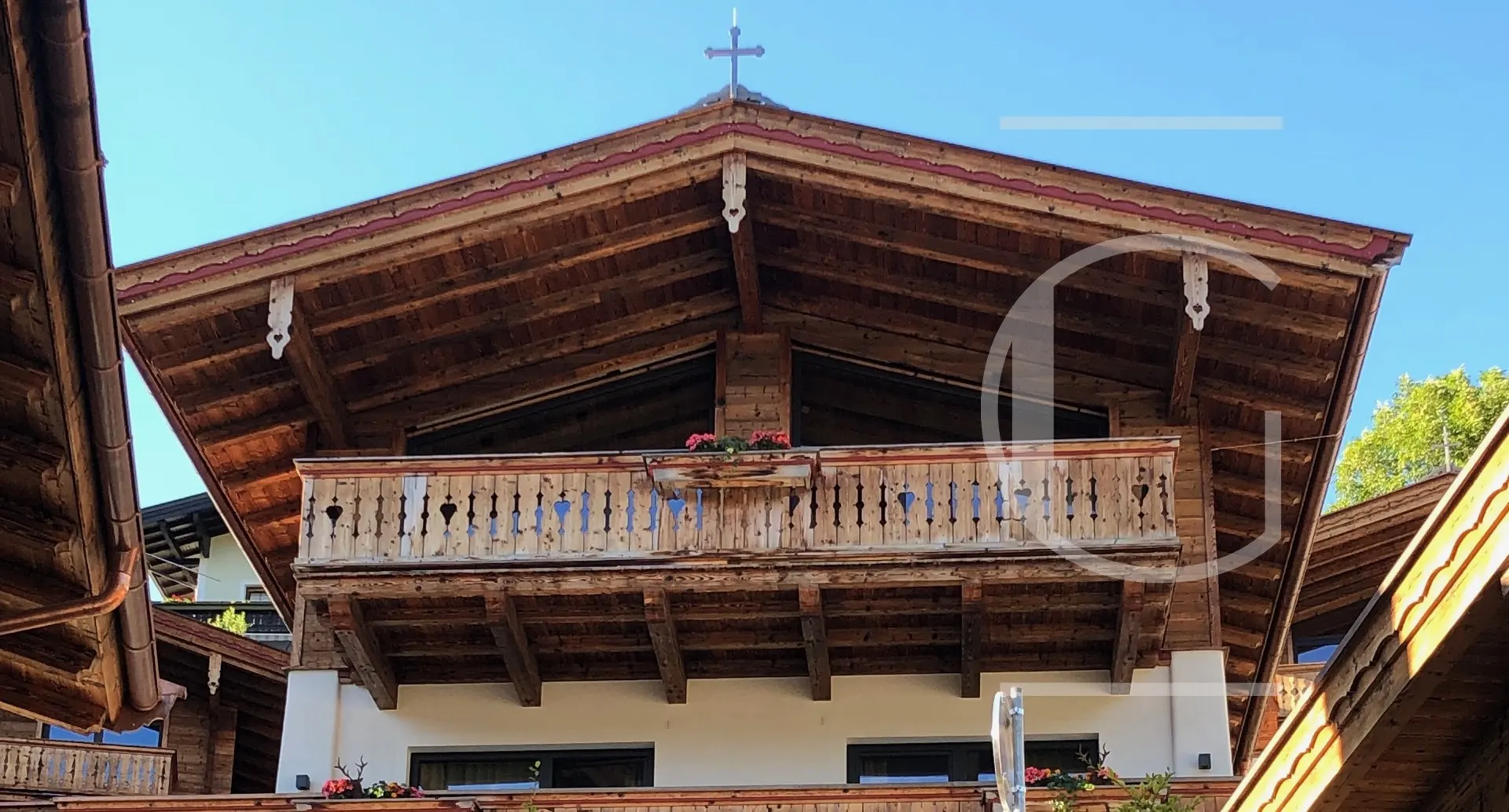 Im Dachgeschoss betreten Sie über einen kleinen Vorraum den großzügigen Wohn-/Essbereich mit Sichtdachstuhl. Dieser ist mit einer hochwertigen Küche mit Markengeräten ausgestattet. Im Wohnzimmer lädt die gemütliche Couch, von der Sie einen atemberaubenden Blick auf den Großvenediger haben, bei knisterndem Kaminfeuer zum Verweilen ein. Abgerundet wird dieses Immobilienangebot durch einen Wellnessbereich mit Sauna und Bad im obersten Geschoss.